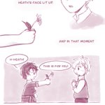 71 97 I drew this little Shino & Heath comic after reading main story chapter 12 last year!! Shino’s feelings are so earnest... he would give Heath the world if he could!! ! 😭💐 #まほやく_FA 21/09/27 23:30