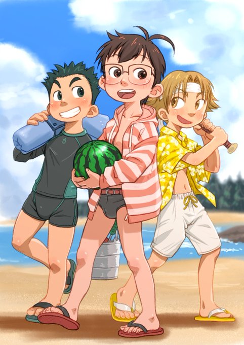5 19 遅刻、ちこく〜! こんな早朝ですがビキニの日に遅刻した巽くんを描きました。 全身像はここではない各所でどうぞ。 23/07/07 07:16