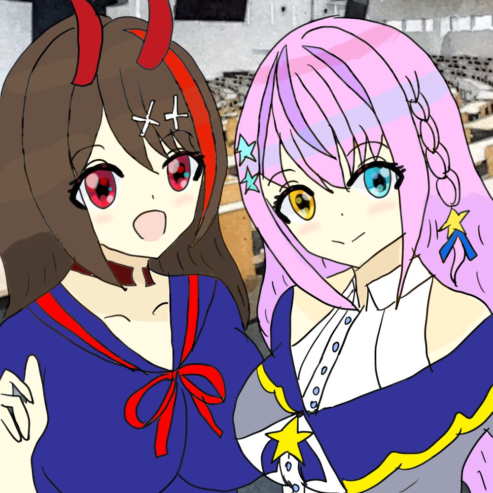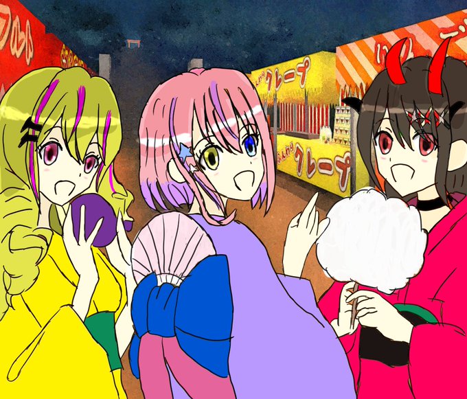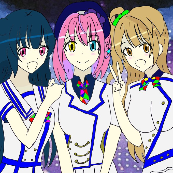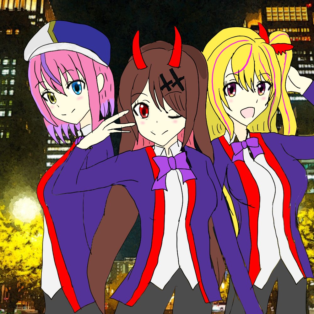 #夢の中絵 #あくまびじゅつかん #魔法少女活動報告書 のリプロ2期生版Gulty Kiss #胡桃澤もも →桜内梨子(オタク気質とタイプが似てる) #逢魔きらら→津島善子(挨拶の口上が似てる) #夢乃リリス →小原鞠莉(お金はないけどハチャメチャやる感じが似てる)