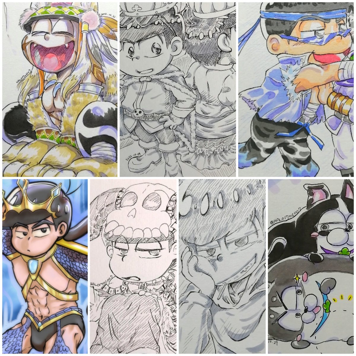#今月描いた絵を晒そう 試しに一枚描いてみただけのインク松が、こんなに続くと思ってなくて…😂 枚数だけなら過去最高に描いたのでは…? アナログ絵の取っ掛りのハードルの低さを思い出しました✨ 🔰だった塗りも、色々と勉強になりました🙏