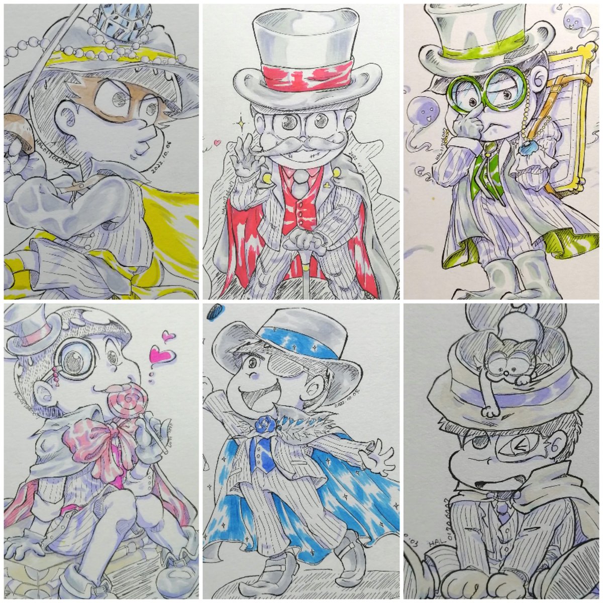 #春のペン松り #春のペン松り2023 チル松さん6人描いたのまとめてみた。 ✻*˸🌷 ❤️💙💚💜💛💗 🌸*˸*⋆。 全員描くのたのちい✨🌈 こんな期間でもないとなかなかできないことね(「✒️・ω・) twitter.com/HAL01706007/st…