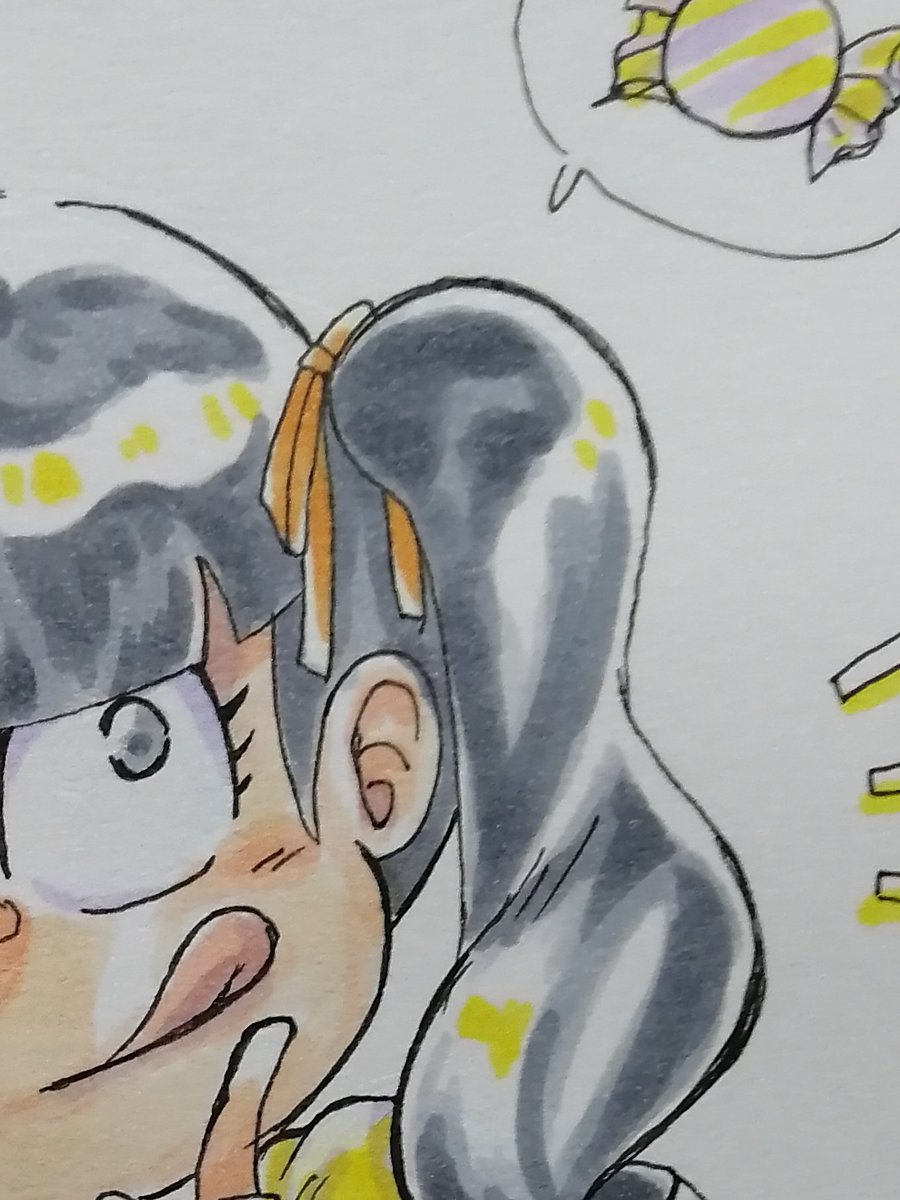 リクエスト候補にあって、こっちも描きたくなってしまったペンキいちまっちゃん。 #春のペン松り #春のペン松り2023 おやつをたべなきゃイタズラしちゃうぞ✍️ 🥪🍝🍜🍔🍭🍬🍪 筆の先は皆様の心の色で補完してくだせぇ…🙏🌈✨ twitter.com/HAL01706007/st…