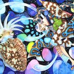 「紫陽花と花鯨」を描きました。 青い花畑にしか現れないクジラです。 GENSEKI genseki.me/works/ReXmYnKM… #GENSEKI #卯月小春 #コピックGENSEKIイラコン #透明水彩 #カラーインク