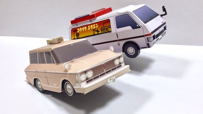すごい! ありがとうございます。 このプリンスグロリア、高速有鉛での実質第1作ですが、自分ではよくこの面構成思いついたなと自負しております。デフォルメしたのとしてないと揃ってウィリー! twitter.com/yoshi_craft071…