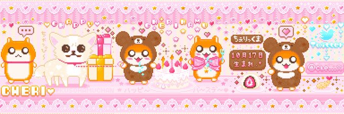 5 21 ちぇりっくまヘッダ〜🐹🍖🧸🎂💝 #dotpict #pixelart #ドット絵 @che___x 21/10/20 03:10
