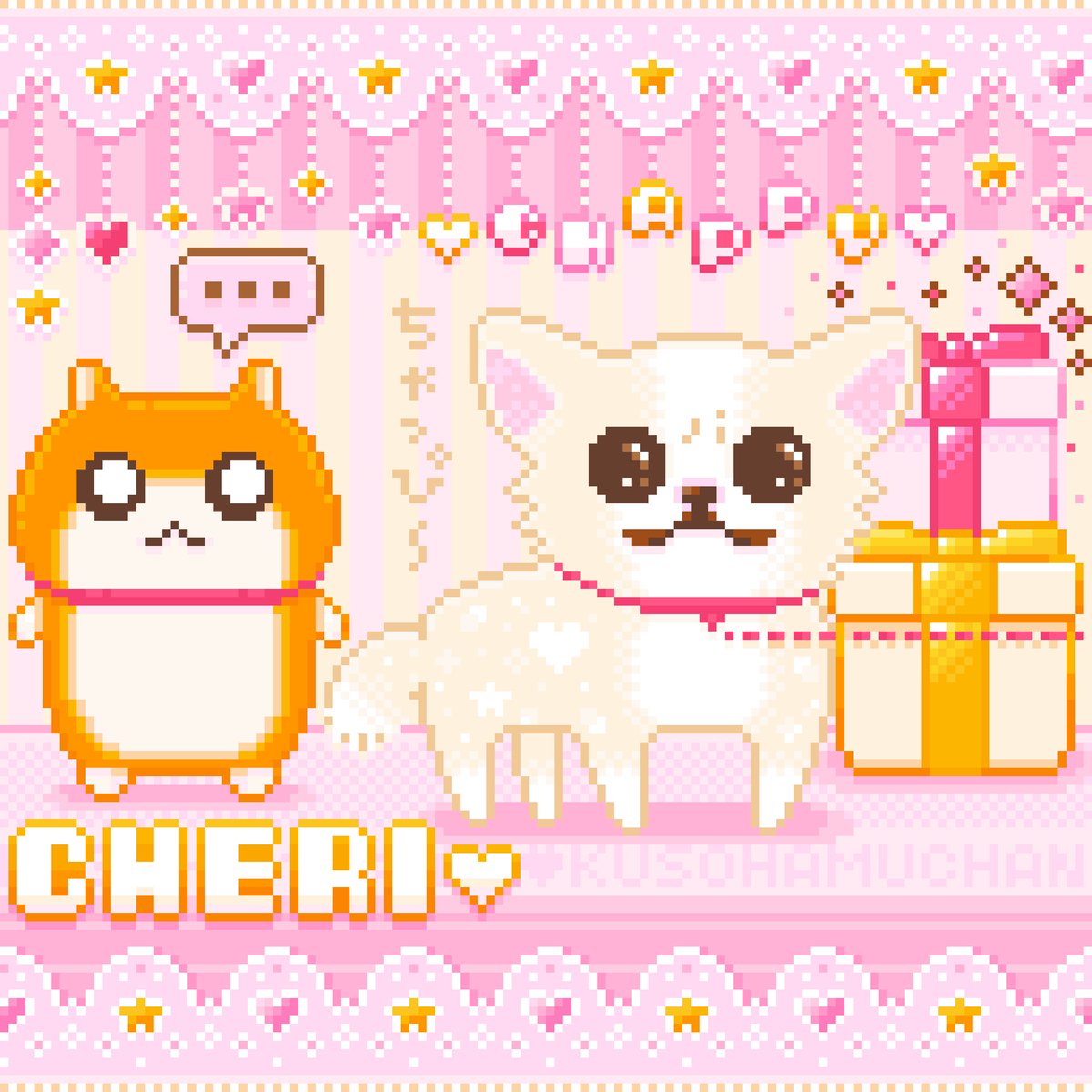 35 166 クソハムちゃん🐹🍖🧡 ハッピーバースデー🎉🎂🎁 この先もずーっとずっと!!!!! クソハムちゃんとNORICOPO先生を一生推します🫶💝🎀💕🌸 7歳おめでとう🥂 #クソハムちゃん #3月17日 #クソハムちゃん生誕祭 #dotpict #pixelart #ドット絵 @kusohamu_chan @noporico 23/03/17 00:02