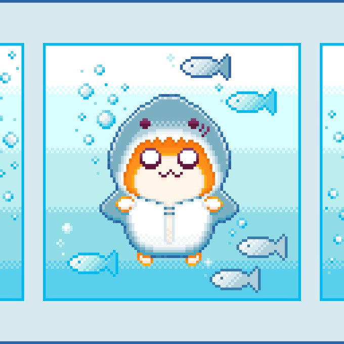 サメハムちゃん水族館°・🐠🦈🐹🍖 #ドット絵 #クソハムちゃん #dotpict #pixelart