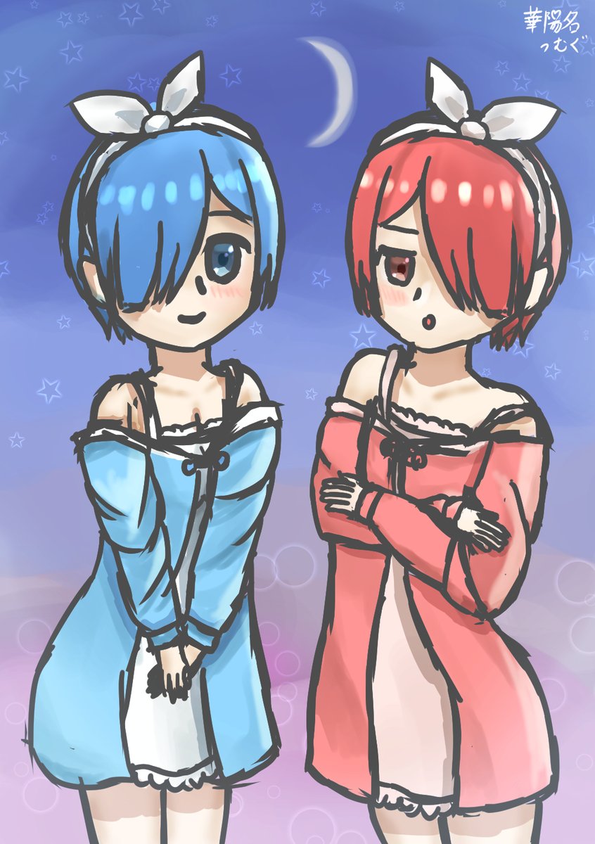 視聴者リクエストでラム&レムを描いてみました! (衣装はお誕生日記念2022年のもの一部妄想) ほぼ落書きみたいな仕上がりになってしまいましたが 今後も続けて、向上目指していくぞ😁 #絵描きさんと繋がりたい #春の創作クラスタフォロー祭り #レム #ラム
