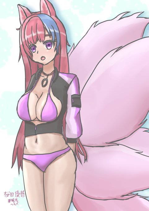 桜田優さん(@Sakura117Studio) 水着企画のご参加ありがとうございます! 今回は女性化して描いたのですが、すごい美人さんになりました。流石です😆 あともふもふもしてみたいです! #イラスト好きな人と繋がりたい #イラスト #工房の休憩アート