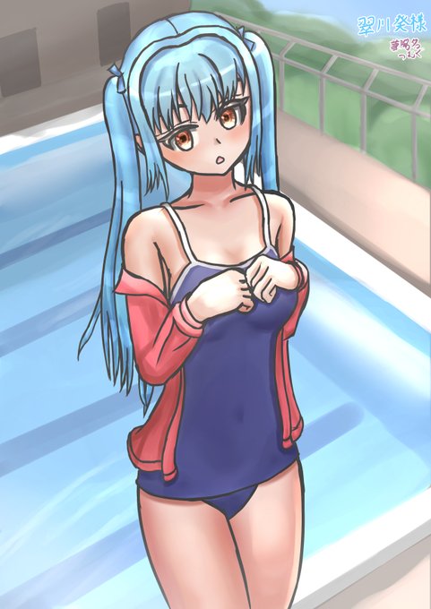 翠川葵さん(@MidorikawaAoi )の水着イラストを描きました!ビキニスタイルではなくスクール水着です😄 立ち絵でも似たような服装はありましたがやはりお似合いですね! #イラスト好きな人と繋がりたい #イラスト #vtuber