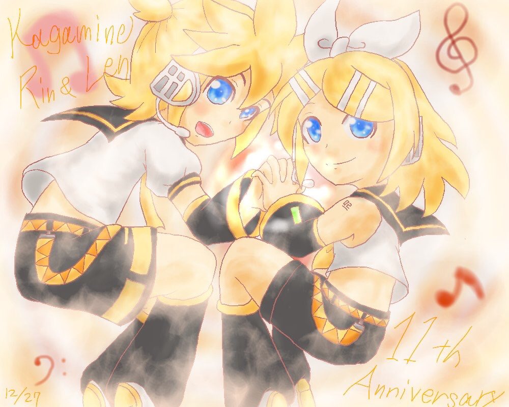 32 111 鏡音11周年おめでとう!これからも鏡音描いていくよ!大好き!(∩^o^)⊃━☆゚.*・。 #鏡音リンレン11th #鏡音誕生祭2018 18/12/27 00:00