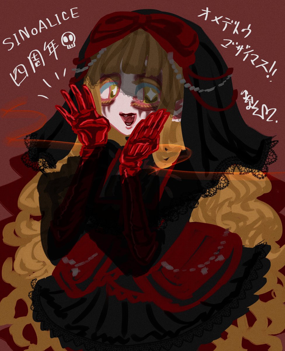 四周年~🎉🎂🎉オメデトウゴザイマス! ゴシックぽい赤ずきんちゃんでお祝い🥳 #illustration #sinoalice #シノアリス #シノアリス_ファンアート #シノアリス生前葬 #呪4周年シノアリス #呪4周年シノアリス生前葬