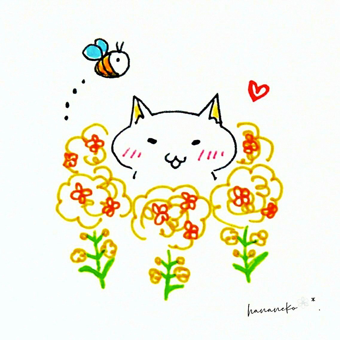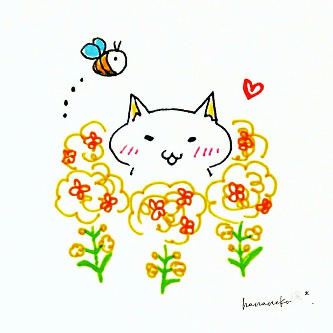 春が来たよ🌿🌼🐈💕 ▹◃┄▸◂┄▹◃┄▸◂┄▹◃┄▸◂┄▹◃ #猫 #落書き #オリジナル #サラサクリップ