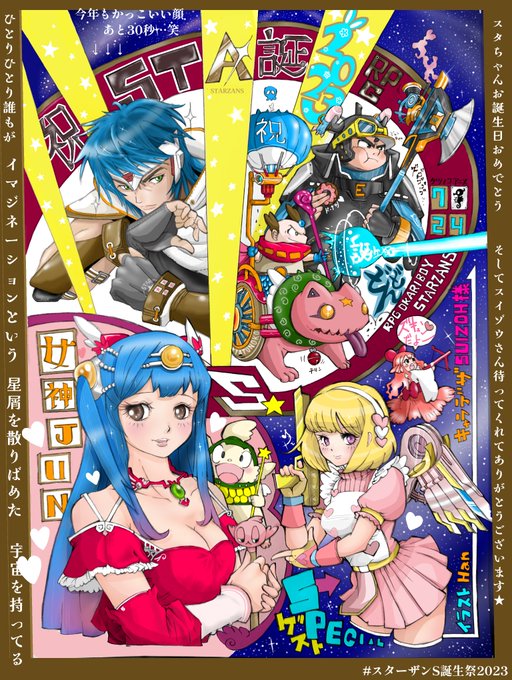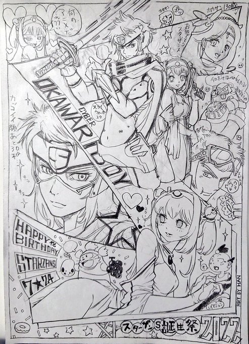 7月ラスト✨ 結局企画最終日にも間に合わないグズでノロマな亀がここに…😅タハハ ですが最終日ですので一旦線画仕上げ中の一部をアップしてお祝い絵としたいと思います🥰後日完成したら改めてアップいたします🌈✨ #スターザンS誕生祭2023