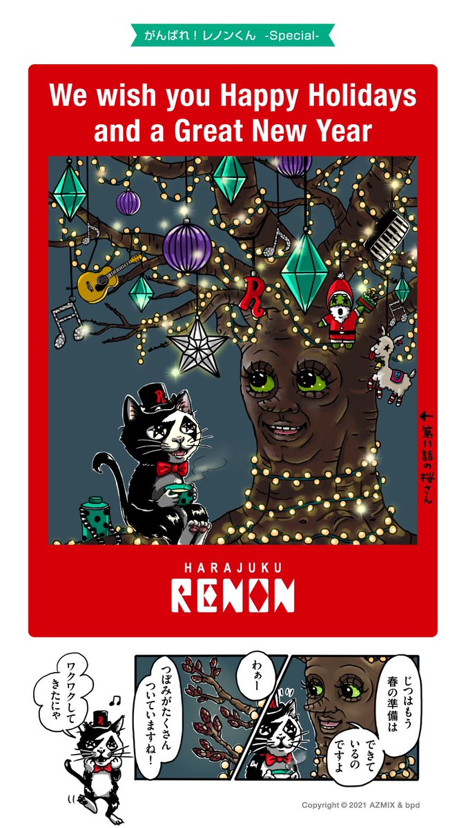 🎄本日出演アーティスト🎁 流田Project @info_nagaredap #原宿RENON #レノンくん #猫 #イラスト #流田Project #UNPLUGGEDLIVE #カメーンクリスマス #アコースティック #2021年もありがとうございましたにゃ🐈🐈⬛🎅🌃🎸✨