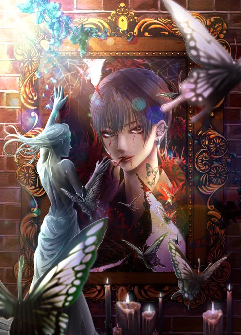 好きなもの描いてみたイラスト73 制作者様と一緒に遊んでくれた方に 感謝の気持ちを込めて 遊んだマダミス全部楽しんだ記念に ネタバレを配慮した絵にして残したい 名探偵は4人もいらない Grateful When You're Dead 狂気山脈 #illustration #絵描きさんと繋がりたい