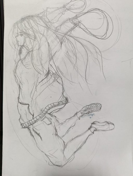 #イラスト #アナログ 手がかけていませんが、ジャンプしているところです。