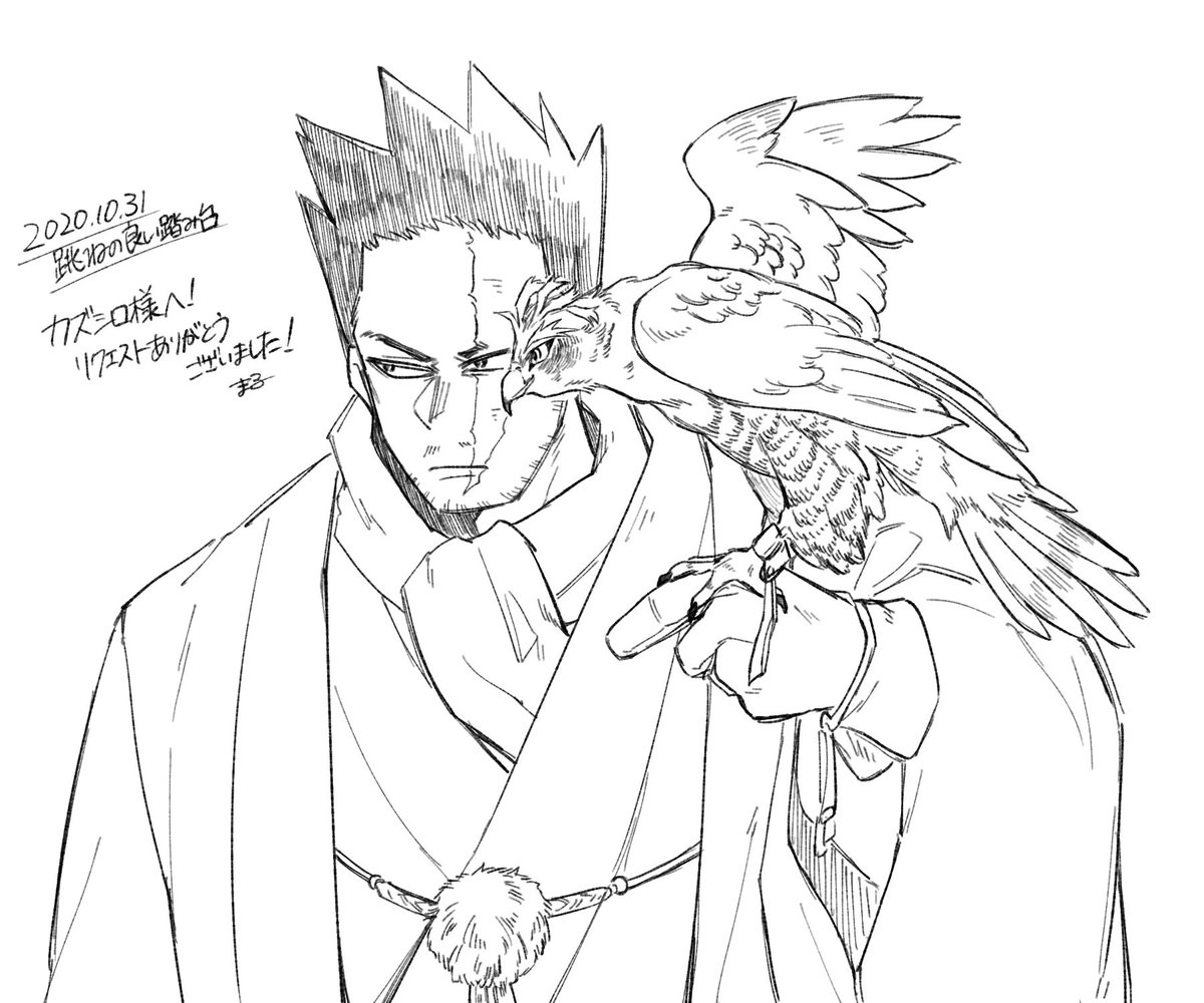 跳ね台エアスケブ① カズシロ様より『鷹師な炎ホ』 ※再掲失礼します、訂正版です