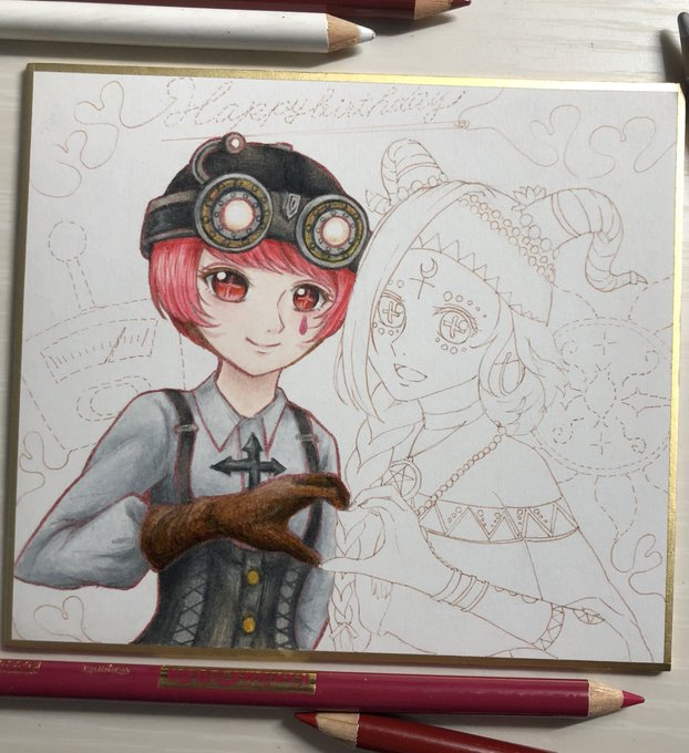 誕プレ制作 1人目完成💦 #イラスト #誕生品プレゼント #途中経過 #色鉛筆 #第5人格