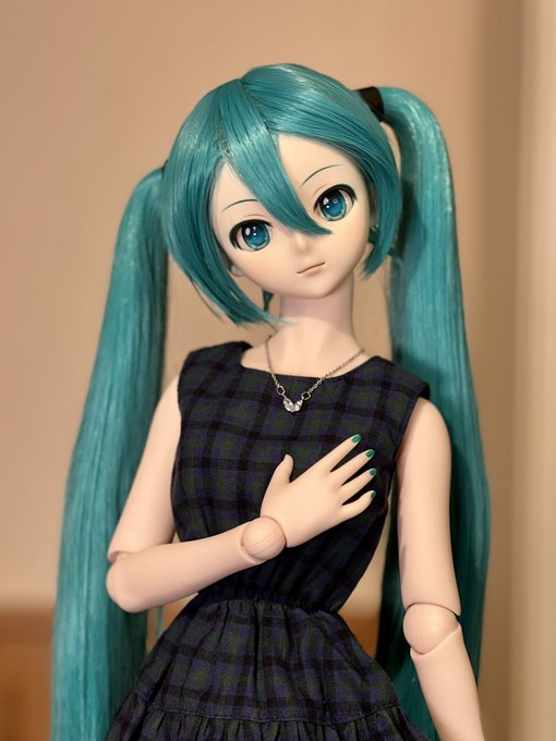日付けが変わる前に何とか… まだまだ表情硬くて、借りてきた猫みたいですが、今日からうちのこです😊 そういうオーナーもまだ接し方がぎこちない💦 この娘は金髪とかにも挑戦してみたいなぁ… どんな娘に育つかな? #うちのこかわいい #ドルフィードリーム #DD初音ミク 妹ちゃん