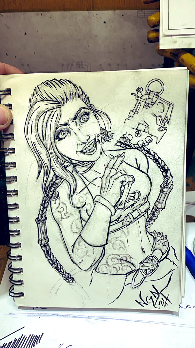 So that arcane show … holy thunder tits is it good!!! So i drew jonx while waiting for the other episodes btw its not done yet #arcanefanart #arcanejinx #arcanenetflix #Jinxfanart #art #WIP #crazy #artistsontwitter #sketch #drawing #LeagueOfLegends #lol #fanart