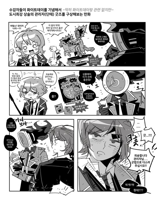 화이트데이 흑심 완전공명(개그)만화입니다 수감자들이 각자 단테굿즈를 구상합니다 #LimbusCompany