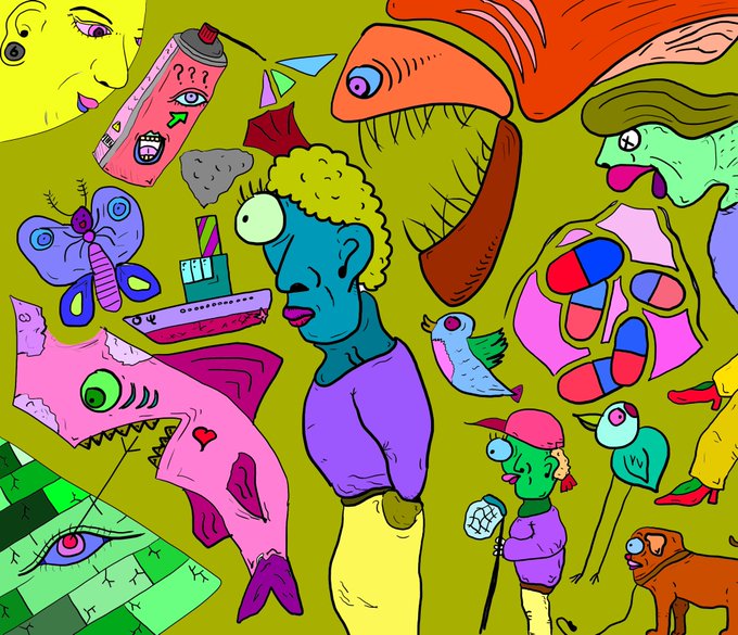 第三作目。 題名は「Twitter」です。 私個人のTwitterの雰囲気に対するステレオタイプを描きました。 #絵描きさんと繋がりたい #絵柄が好みっていう人にフォローされたい #絵 #photoshop