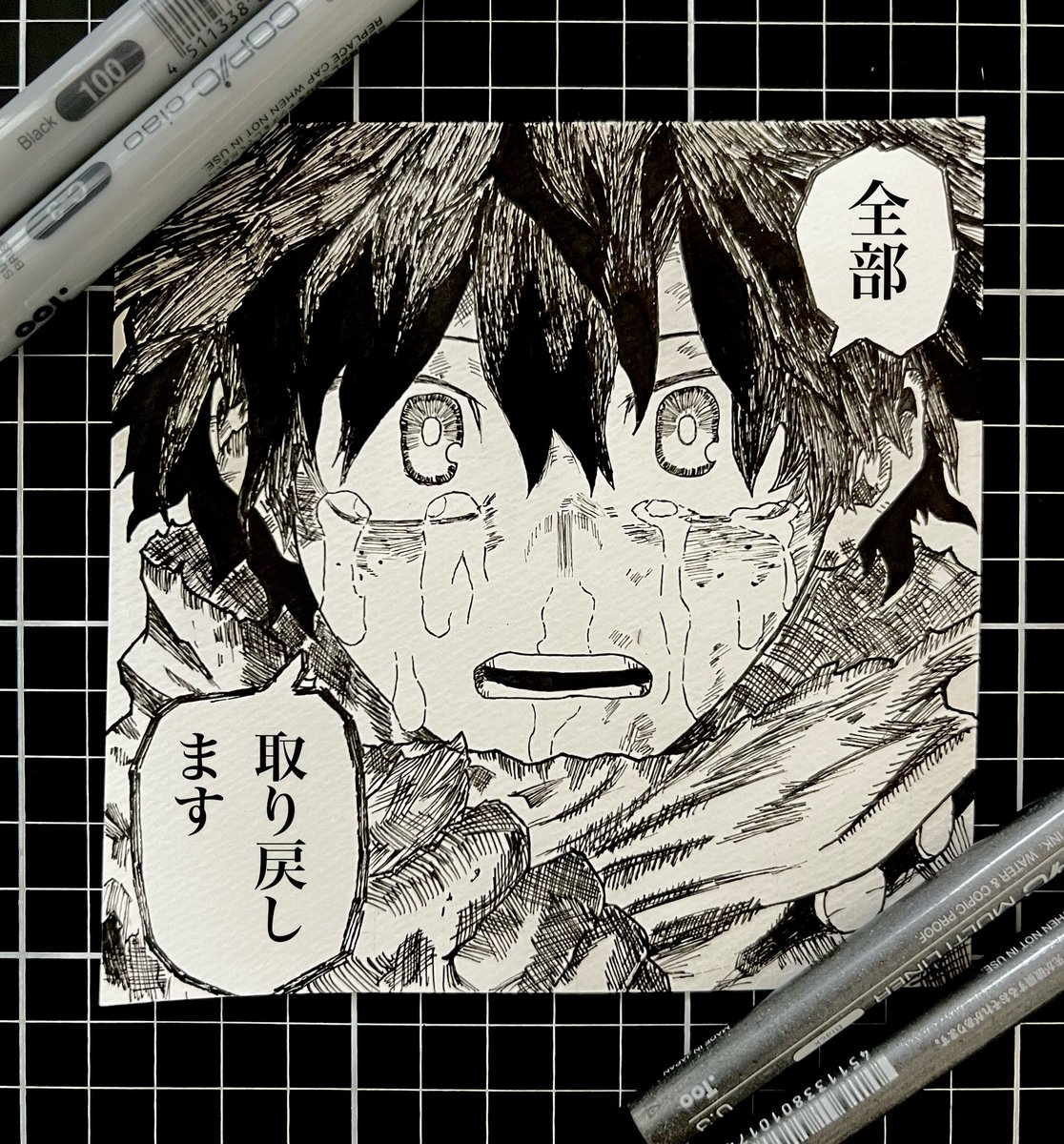5 53 #このタグを見た人は自分が描いたモノクロ絵を貼れ #模写 #イラスト #ヒロアカ #呪術廻戦 この時は呪術も描いてたなぁ! 22/09/21 18:37