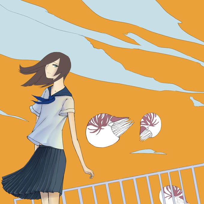 #デジタルイラスト #少女 #制服 #イラスト好きな人と繋がりたい #絵描きさんと繋がりたい #初夏の創作クラスタフォロー祭り Day5 前描いた絵の線画とカラー 昨日の絵はもう少しかかります、なので過去絵をお納めください
