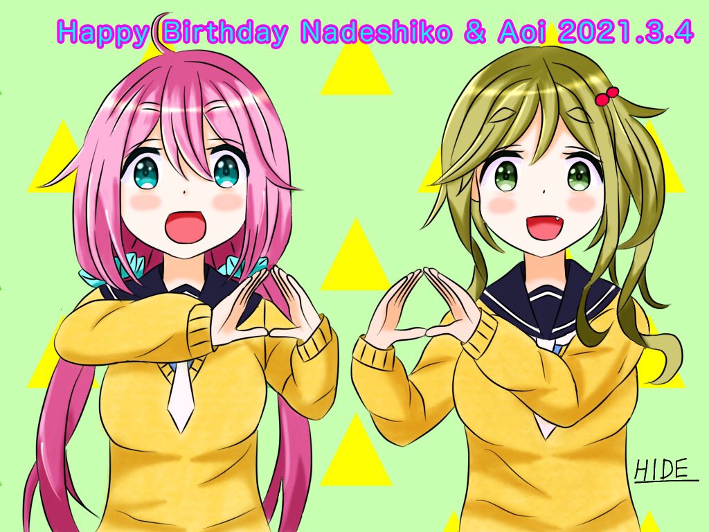 なでしこちゃん&あおいちゃん誕生日おめでとう🎉🎂 #各務原なでしこ生誕祭2021 #各務原なでしこ誕生祭2021 #犬山あおい生誕祭2021 #犬山あおい誕生祭2021 #ゆるキャン #イラスト #イラスト好きさんと繋がりたい #アニメ好きと繋がりたい