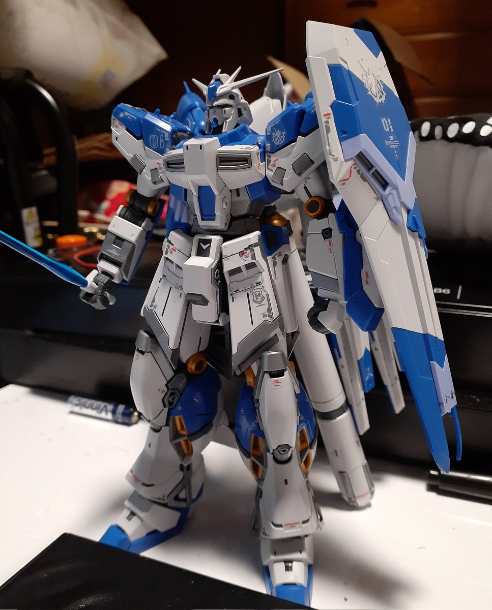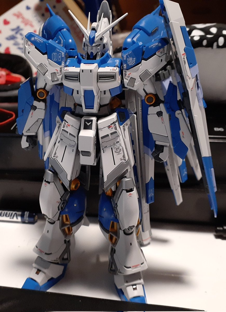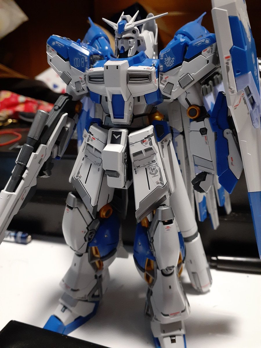 RG Hi-νガンダム制作4日目😁 遂に完成しました!😆 デカール貼りに加えてスミ入れを施しました🙂 #ガンプラ好きな人と繋がりたい #ガンプラは自由だ #ガンプラの画像貼るとRTされると聞いて