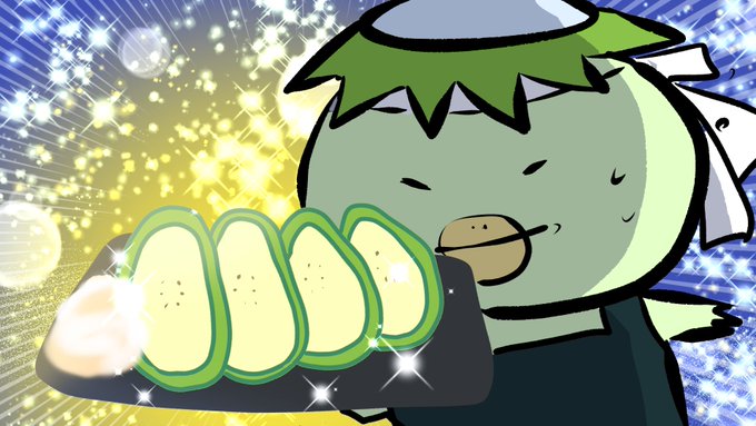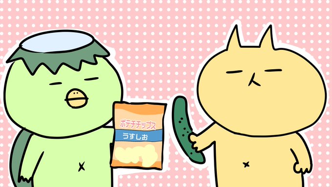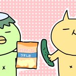 2 11 #イラスト #フリー素材 #ねこかっぱ グルメ漫画風かっぱっぱ 「きゅうりの刺身っ!!!」 23/05/25 08:13