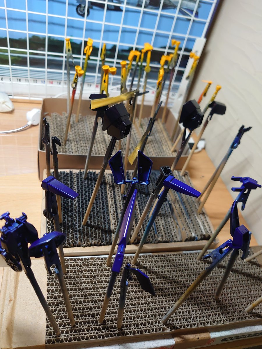 RG Zガンダム 11日目 湿度計見ながらトップコート🙂 バラすのは最小限にしたせいで磔の刑みたい笑 #ガンプラの画像貼るとRTされると聞いて #ガンプラ好きとつながりたい #ゼータガンダム #RG