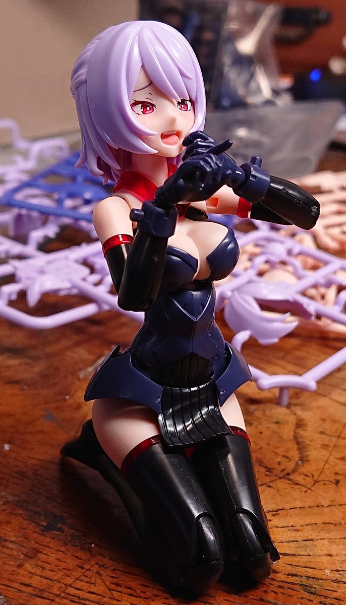 羽を付けた。 大昔のヴァンパイアセイヴァーのガシャポンフィギュアのリリスの羽を、基部を加工して流用。 見よ!この絵に描いたようなサキュバスぶり!(笑) #ファンタジーフィギュアを作ろう #メガミデバイス