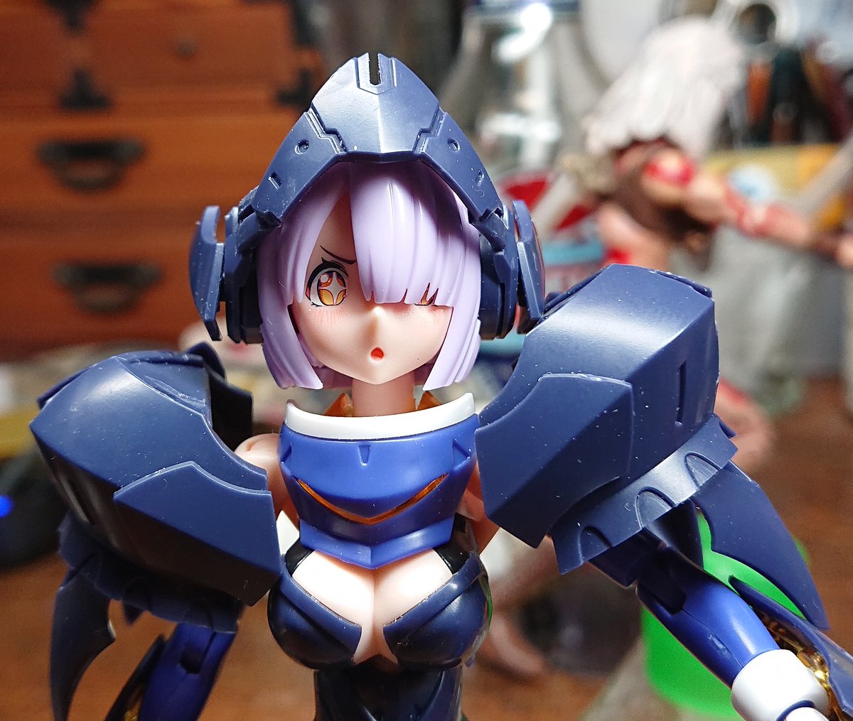 頭部側面、ラーニアの余剰スパイクを着けたらいい感じに。 なんかこんな頭部デザインのスーパーロボットおらんかった? ロボットガールズZみがある(笑) #ファンタジーフィギュアを作ろう #メガミデバイス
