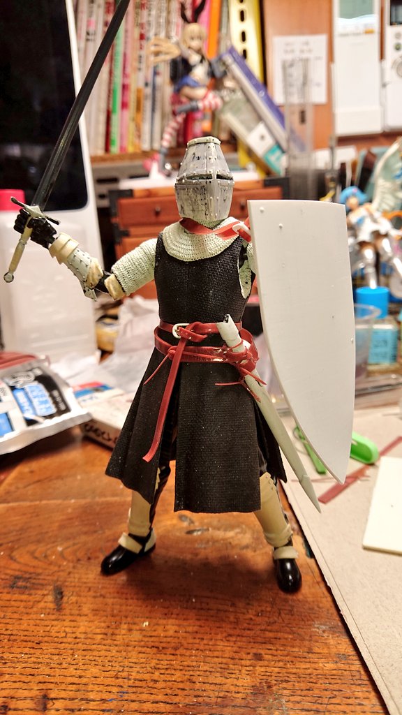 エクスキューショナー用肩アーマー、付けると肩の可動がかなり制限されるので、基部を可動式にして角度が変えられるようにしてみた。 これだけでもかなり自由度が上がったぞ! #メガミデバイス #ファンタジーフィギュアを作ろう