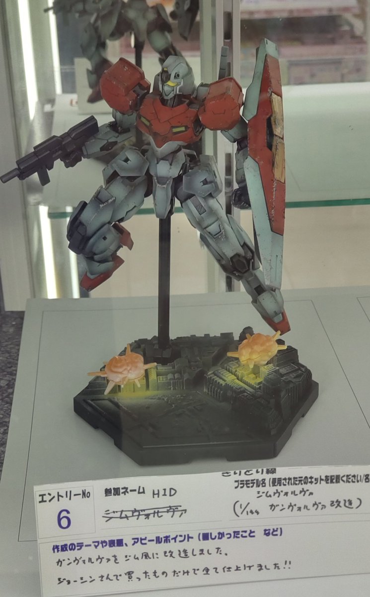 #Joshinつかしん店ガンプラコンテスト4 エントリーNo.6 「ジムヴォルヴァ」にて参加させて頂きましたー!よろしければ見にいらしてくださいm(_ _)m 今回はキットもマテリアルも「全てジョーシンさんで買ったもので仕上げる」をテーマに制作しました (名前書く所間違ったのは気にするな;)