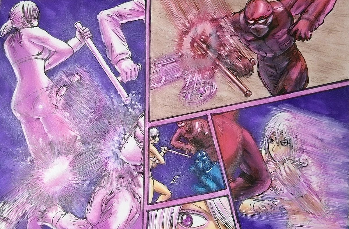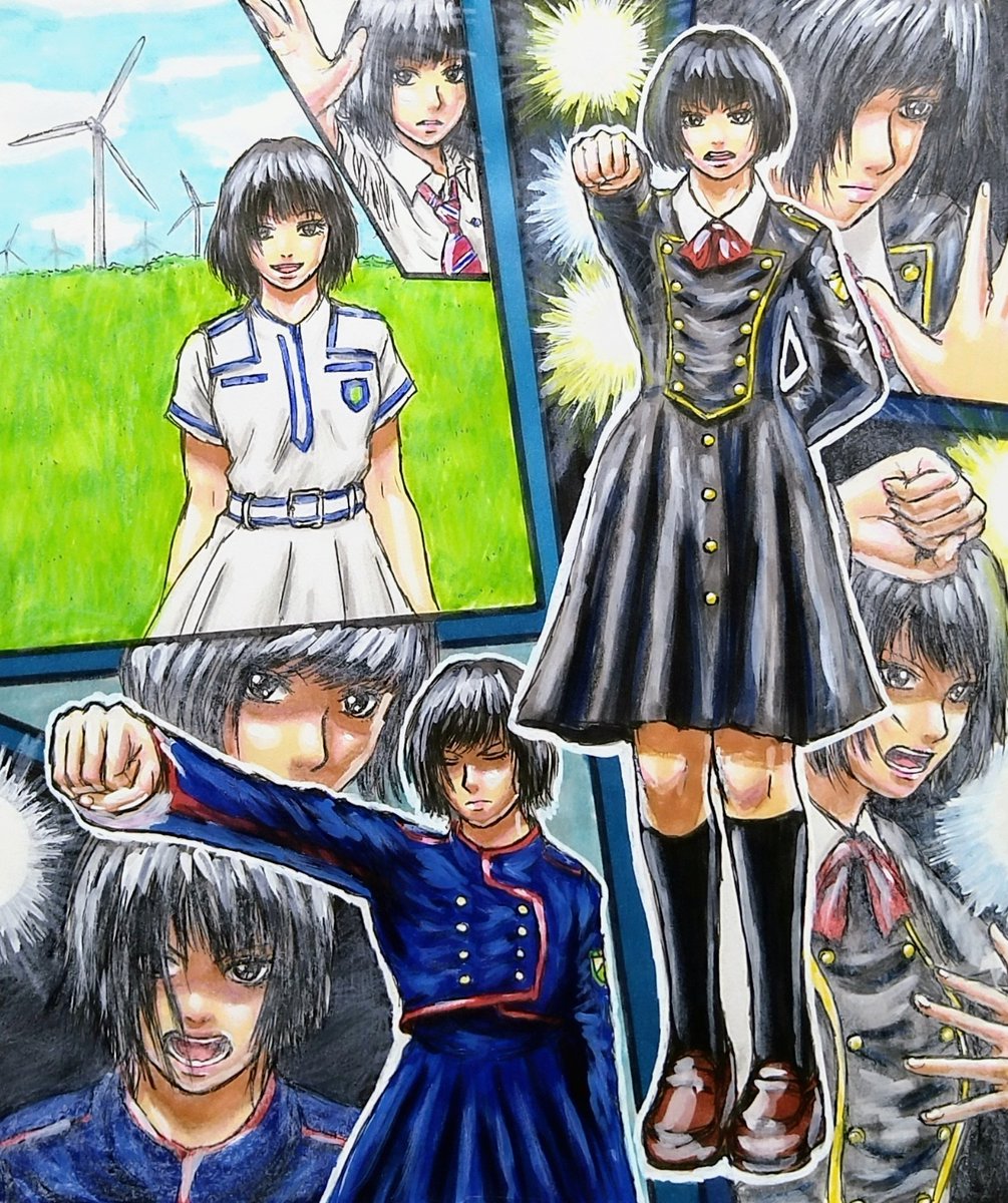 #オリキャラ #アナログイラスト カイリー VS 謎のロボット。