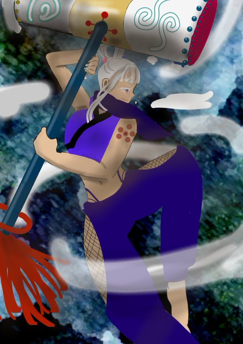 #イラスト #落書き #落書き好きさんと繋がりたい #オリジナル #アイビスペイント #イラスト好きな人と繋がりたい だいぶ前に描いたやつ 忍者のようなどこかの戦闘民族のような…感じのです。 武器は、太鼓モチーフ