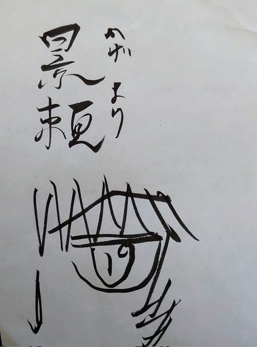 #落書き #イラスト ひょっこり景頼ww オリキャラ。筆ペンにて一発描き。