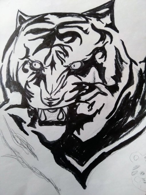 #落書き #イラスト 虎を筆ペンで描きました。単なる手慰みです。動物は難しい(苦笑)