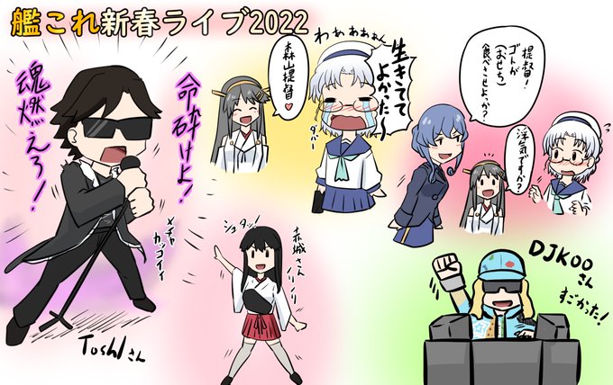 218 624 艦これ新春ライブ!とても楽しかったです! Toshl提督さん、声優さん、1YMB、艦娘遊撃隊、DJKOOさん、イベントに関わったみなさん! 素敵な時間をありがとうございました! またこんな楽しい時間があるのを楽しみにしてます! (細かい所違ったらすみません) 22/01/05 00:08