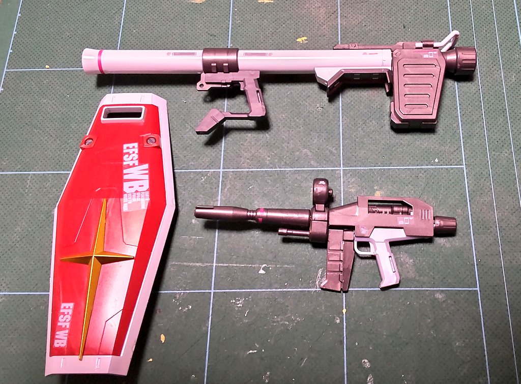 武器とシールドを完成させた✨ 次は本体にシールを貼ろう。 #ガンプラ #ガンプラ好きとつながりたい