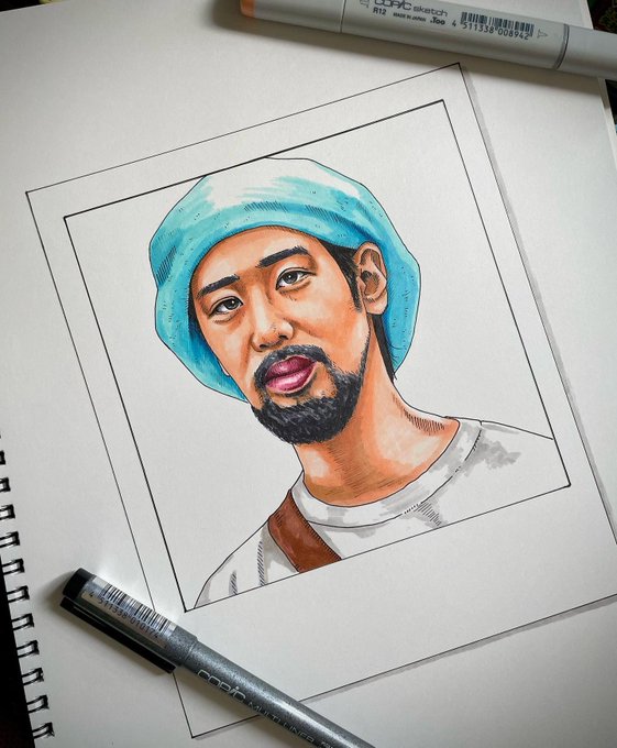 先日のコラボ展で メイクをした白水汰一 @T_Shirouzu さんに似顔絵のオーダーを頂き、描かせてもらいました。 ありがとうございました! とても可愛いですよ! #イラスト依頼 #似顔絵 #絵描きさんと繋がりたい
