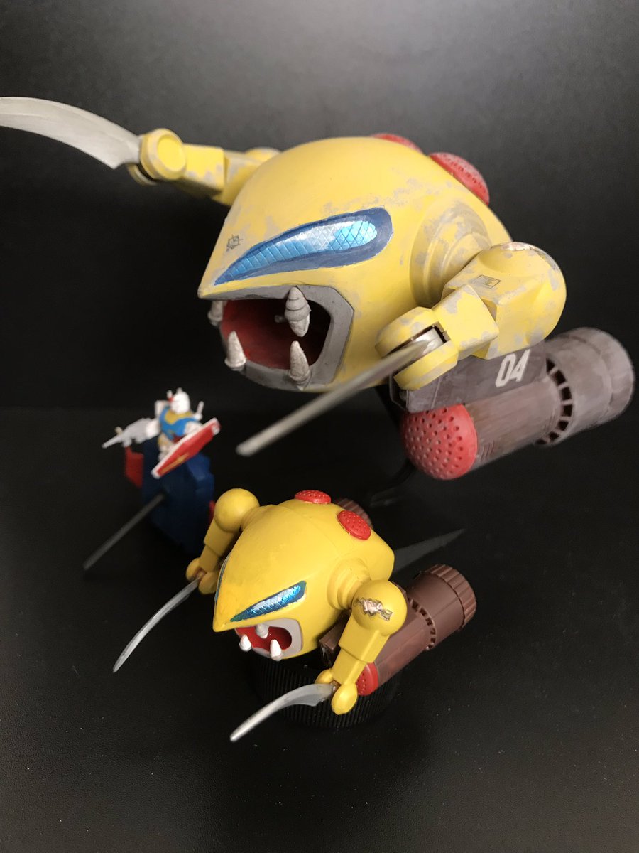 プラモ製作記録 ズゴック 1/144 子供の頃父親が作ってくれたウェザリングズゴックを思い出して作ってみるも思い出補正もあってか何か越えられない感。若くして旅立った父親は見ているだろうか... #プラモ #ガンプラ #旧キット #ズゴック #ガンプラの画像貼るとRTされると聞いて