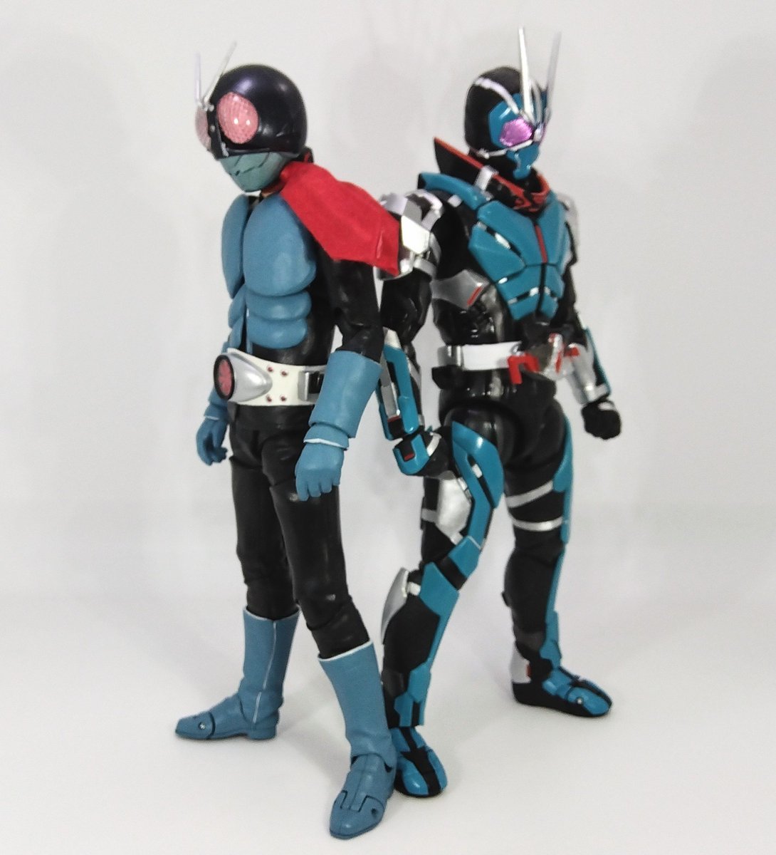 我が家にある旧1号カラーの仮面ライダー達 1型以外、とりあえずバッタっぽいものはとにかく旧1号カラーにするのハマってた時期がある なんならゼロワン手に入ったらまた塗るつもり #フィギュアーツ写真部 #造って遊ぼ #仮面ライダー