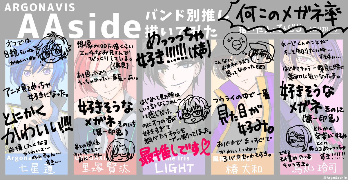 【01】 五島岬 一人目は岬くんでした!ちまちまくじ引きながら25人描いていきます。目指せ完走(笑) #argn全員描いてみたい