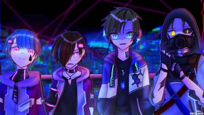 #絵描きさんと繋がりたい #絵柄が好みっていう人にフォローされたい #ぼっくすべる うちの子男性陣×サイバーパンク!! なんか思ったよりカッコよくできて楽しかった!(★ω☆) 描くのに27時間ぐらいかかってしまった笑