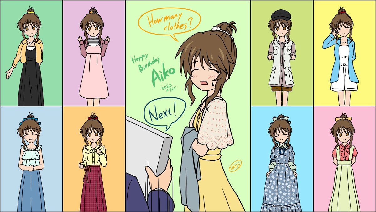 おめもりあいこさん パッション一番手にしてるのに 去年が不完全燃焼感な絵になってたので リベンジも踏まえて…… とかを通り超えて とりあえず着せてみたいなと思った服を 片っ端から着てもらうことにした 有休が丸一日潰れたとは口に出せない( #高森藍子生誕祭2023 #高森藍子誕生祭2023
