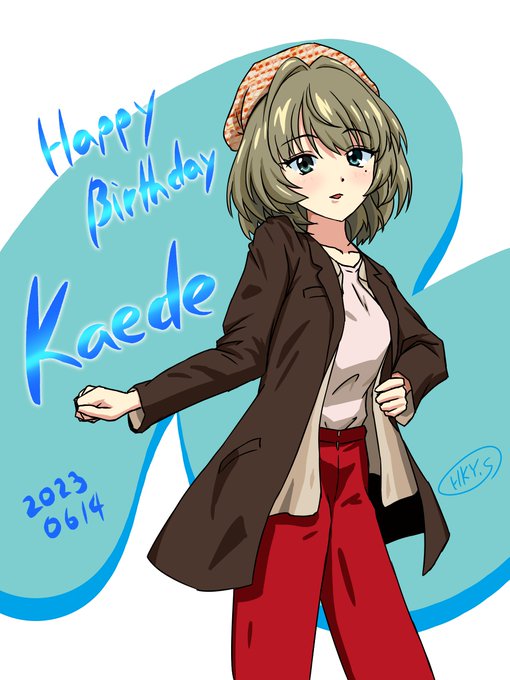 おめがきかえでさん ごめんね楓さん、 諸事情でお酒は週末でお願いします はい、はい、かならず、ハイ……((( 背の高さ的にパンツとかも 似合うと思うんですがどうですかねぇ #高垣楓生誕祭2023 #高垣楓誕生祭2023